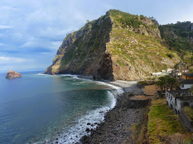 Después de conocer este bonito lugar seguimos nuestro camino hacia San Vicente. En esta parte toca transitar por la vieja carretera la cual se hace muy pesada debido a su estrechez y a las continuas curvas, subidas y bajadas. Intentamos visitar el faro de San Jorge pero ni nos bajamos a verlo, no merecía la pena. Donde sí que paramos fue a echar un cacharro en un mirador que hay en Boaventura. La última parada del día la hicimos en Ponta Delgada, pueblo donde encontramos a sus vecinos decorando las calles para las inminentes fiestas.